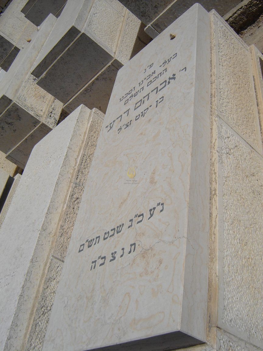"פ"נ בעלי אבינו וסבנו החכם השלם ר' אברהם דרעי בן יקוט זצ"ל נ"ע כ"ג שבט תש"ם תנצב"ה " אברהם דרעי