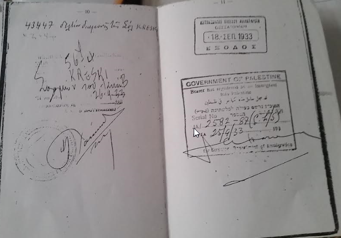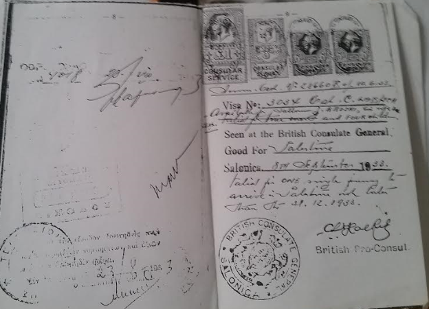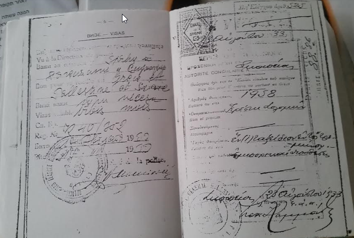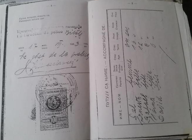 צילום דרכון המשפחה עם עלייתם לארץ. אסתר היא השמאלית ולידה רפאל אחיה, שני הוריה – סול ושלמה ו-2 אחיה – חנה ודוד.