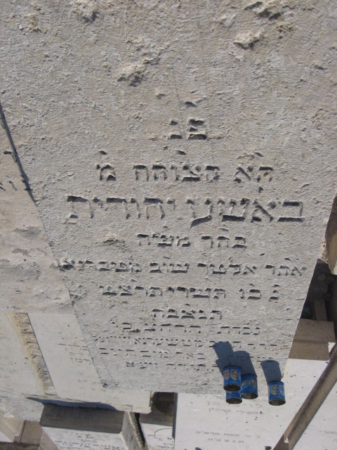 "פ'נ ה'א הצ'והח מ' באשע יהודית בה'ר משה א'הר אלטר שו'ב מטבריא נ' כ'ו תשרי תר'צט תנצ'בה נכדת הרה'צ כ.. הר'ר חיים מטשערנאוויץ זצ"ל בעהמ'ח באר מים חיים על התורה זיע"א " באשע יהודית שיפמן