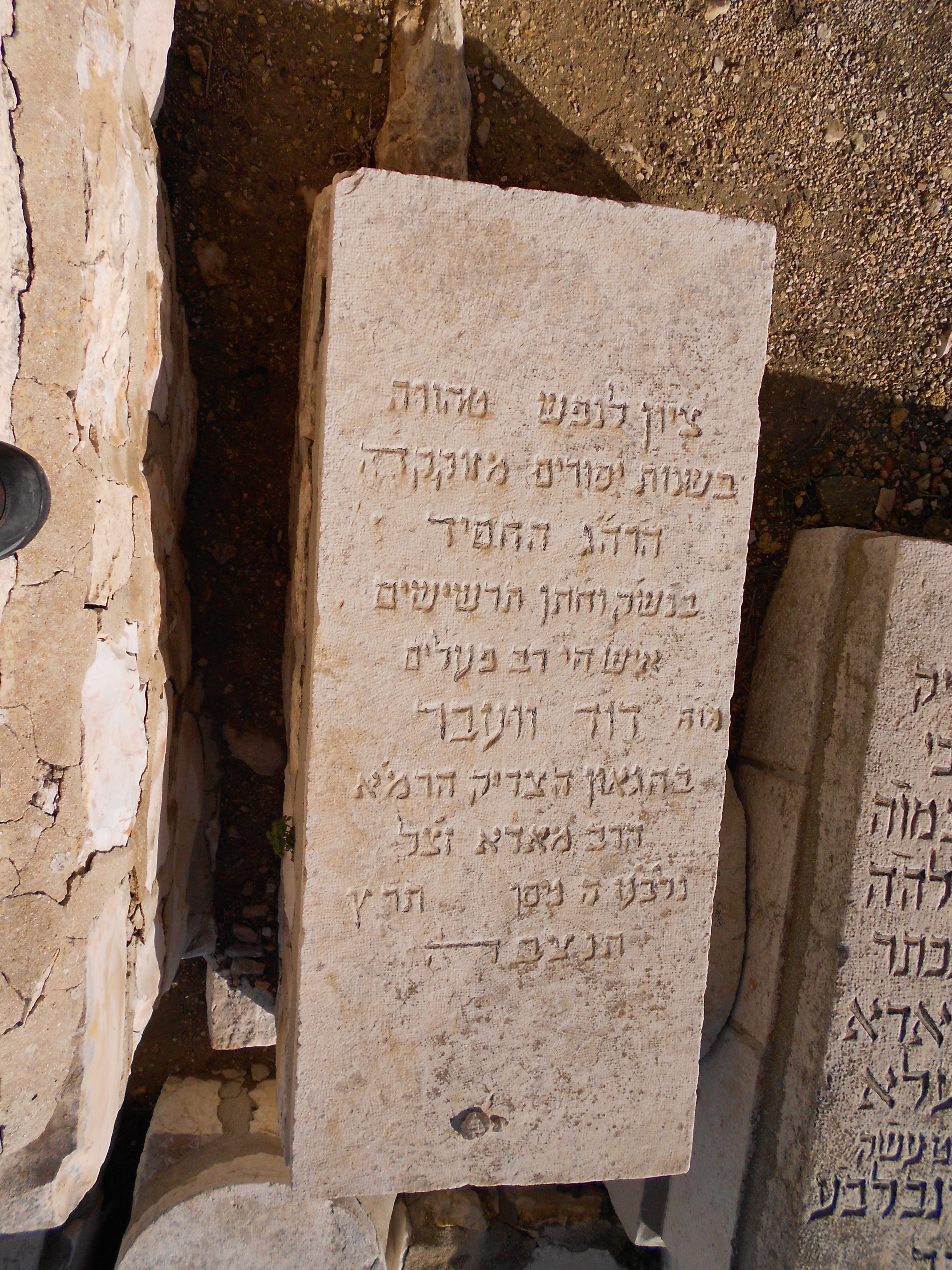 "ציון לנפש טהורה בשנות יסורים מזוקקה הרה"ג החסיד ב'נש'ק וחתן תרשישים איש חי רב פעלים מו'ה דוד וועבר בהגאון הצדיק הרמ'א הרב מאדא זצ'ל נלב'ע ה ניסן תר'ץ תנצבה " דוד וועבר
