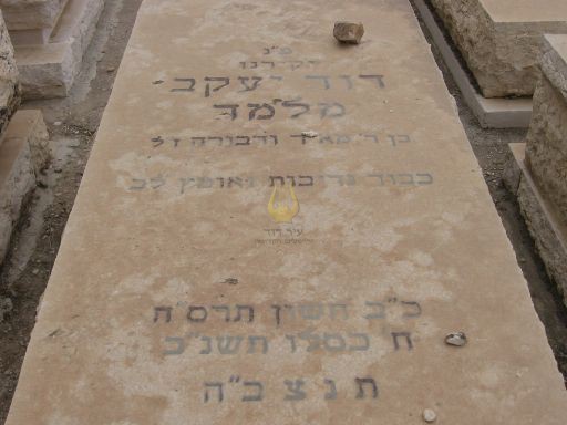 "פ"נ יקירנו דוד יעקב מלמד בן ר' מאיר ודבורה ז"ל כבוד נדיבות ואומץ לב כ"ב חשון תרס"ח ח' כסלו תשנ"ב תנצב"ה " דוד יעקב מלמד