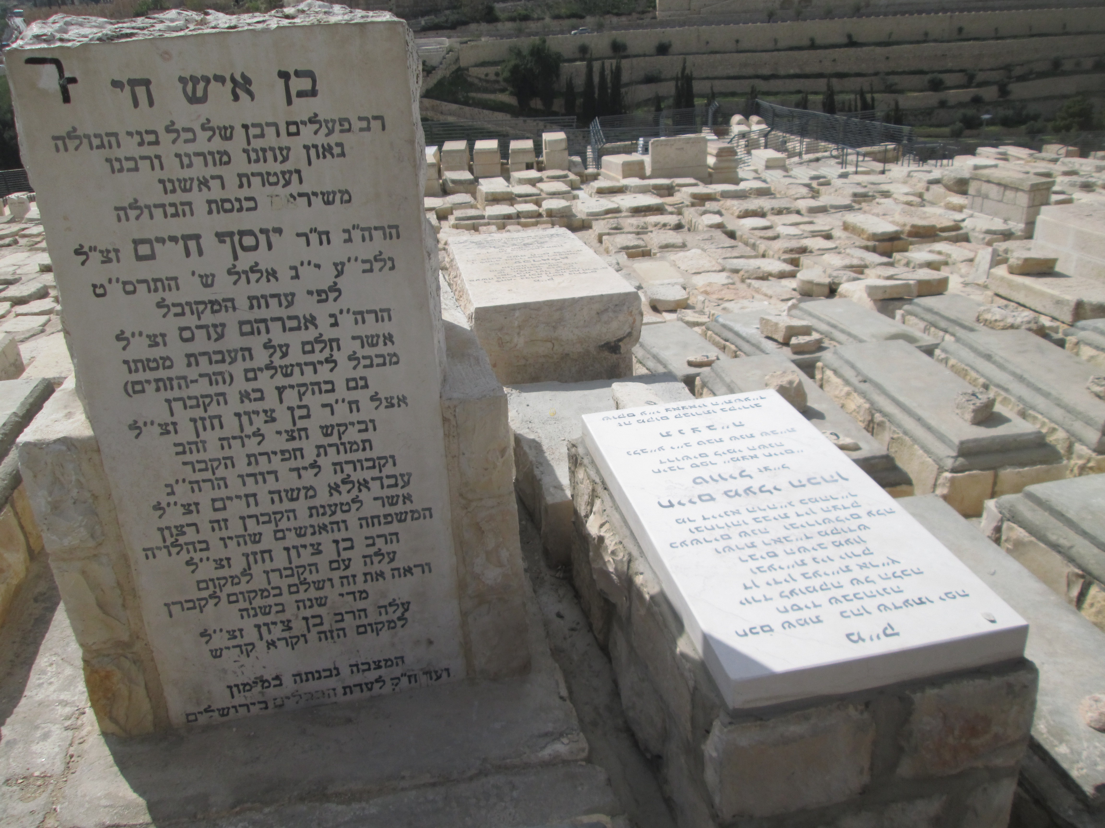 "מ"ק חכם שמת כהן שדעתו יפה חסיד שבכהונה יורד לעומקה של הלכה דן ידין בעי"ת אר"ץ ובעי"ת ניו יורק רבים השיב מעון ושרת ראב"ד מקודש כעשרים שנה ובירושלים עלה ובחרוהו בבית דין הצדק מר דיינא הרה"ג כמהר"ר חיים מעלי הכהן טוויל זצ"ל חיבר ספר "מצא חיים" דרושים לימי השנה נלב"ע י"ב טבת שנת שב"ת תנצב"ה זה מקום קבורתו בקירוב שוקם ע"י צאצאיו ה'תשע"ד " חיים מעלי הכהן טוויל