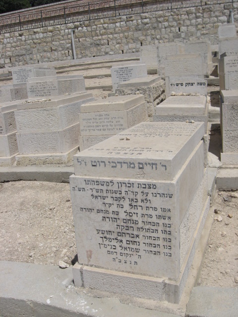 "פ"נ חיים של אהבת תורה יראת שמים וחסידות מתוך יגיעה עמל בתורה ותפילה בתמידות רבותיו בעל קרן לדוד ומעשי למלך ועוד שלמד אצלם בשקידות דבק במרן הגה''ק מסאטמאר ובשאר צדיקי הדורות בן הדריך צאצאיו בדרכי התורה הישרות יהי זכרו לעד לצאצאיו להורות ה''ה החבר רבי חיים ר' חיים מרדכי רוט ז"ל מצבת זכרון למשפחתו שנהרגו על קד"ה בשנות תש"ד-תש"ה ולא באו לקבר ישראל אמו מרת רחל בת יקיר אשתו מרת זיסל בת מנחם יהודה בנו הבחור מנחם יהודה בתו הבתולה רבקה בנו הבחור אברהם יהושע בנו הבחור נחום אלימלך בנו הבחור שמואל בנימין ה' ינקום דמם" חיים מרדכי ראטה