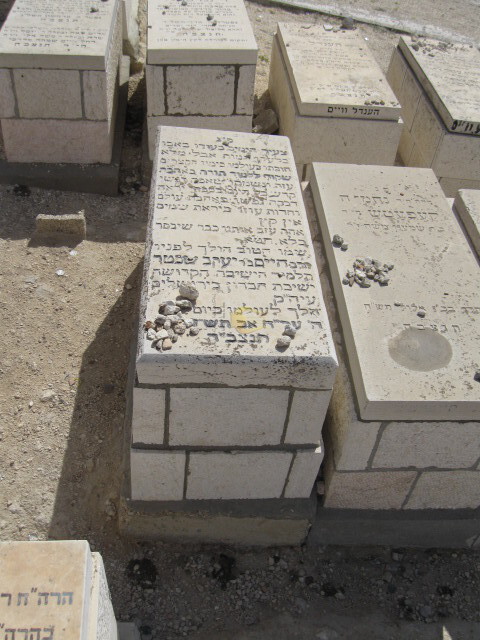 "פ"נ צעיר הימים בעודן באבן בלעהו המות אבל מלא חובתו בעולמו בימיו הקצרים שקוד ללמוד תורה באהבה עזה נשמתו שאפה רגשי קדש כל היזם בספרי יראה דבקה נפשו באהבת עולם וחדות עוזי ביראת שמים אין קץ אהה עזב אותנו כבר שיבסר בלא חטא שמו הטוב הולך לפניו הרב חיים ב"ר יעקב ש תלמיד הישיבה הקדושה ישיבת חברון בירושלים עיה"ק הלך לעולמו ביום ה' ער"ח אב תש"ז תנצב"ה " חיים שכטר