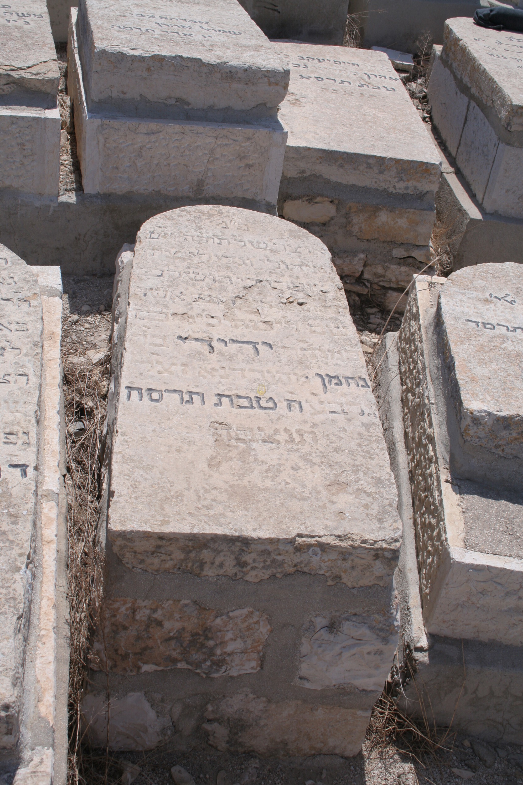 "פ"נ אוצר של תורה וי״ש מגידולי וגדולי ציון ושופרי דירושלם הרה'ג צדיק תמם אש ר שם לילות כימים כמוה״ר ידידי׳ ב״ר נחמן מהורדנא זצ״ל נלב״ע ח׳ טבת תרס״ח תנצב״ה (על-פי 'חלקת מחוקק') " ידידיה לא ידוע