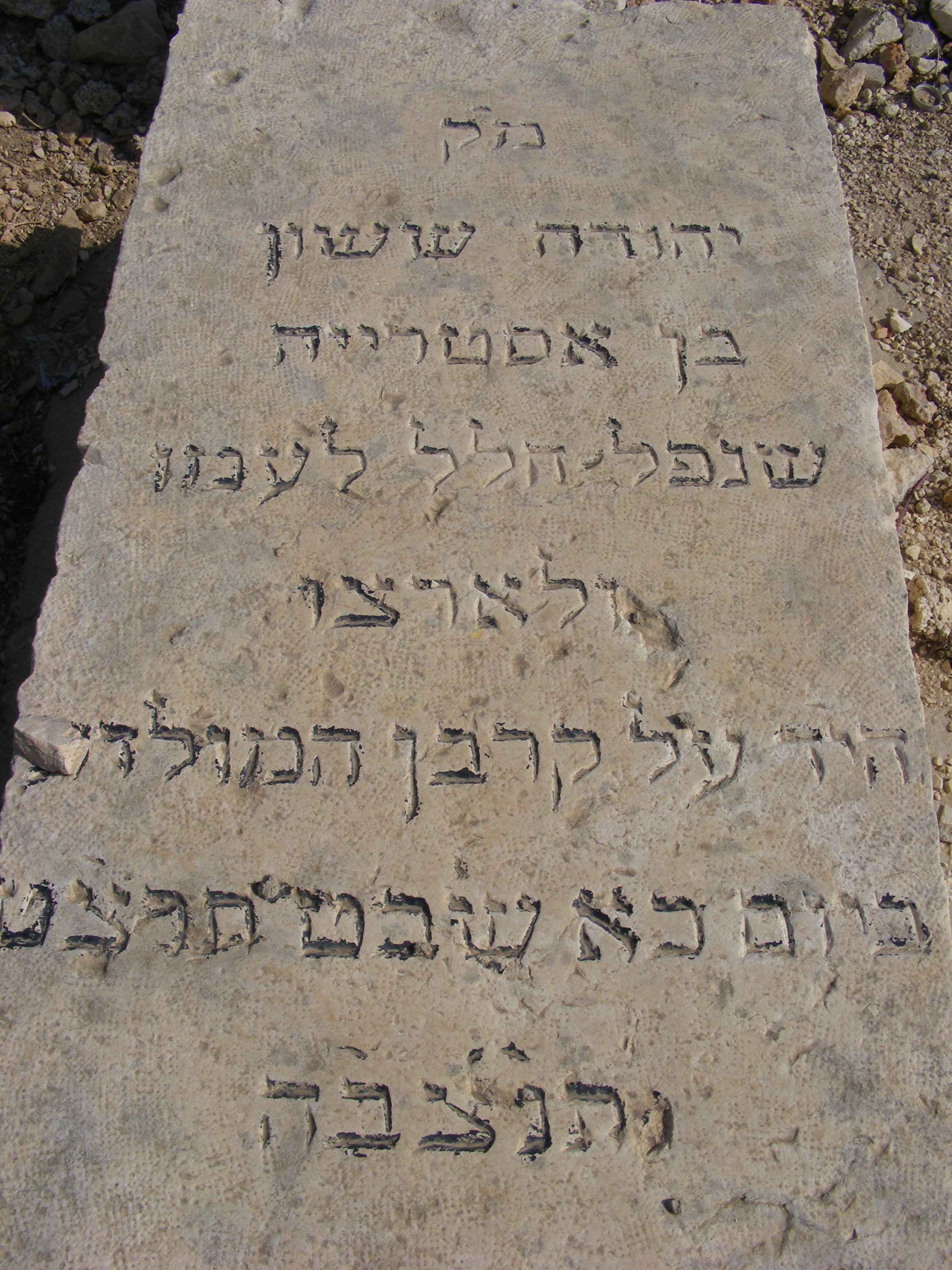 "מ'ק יהודה ששון בן אסטרייה שנפל חלל לעמו ולארצו הי'ד על קרבן המולדת ביום כ'א שבט תרצ'ט ת'נ'צב'ה "