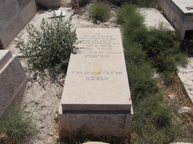 "פ"נ איש חסיד תם וישר בנה ביתו לתורה ויראה לב טוב מלא חסד ביתו פתוח לרוחה לנצרכים בן אחר בן מהט"ז הרה"ח ר' יוסף בן הרה"ח ר' יהודה ארי' הלוי שטיינברג נלבע ט"ז מנחם אב תש"מ תנצב"ה יוסף הלוי שטיינברג" יוסף שטיינברג
