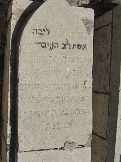 הקבורה כאן היא הרבנית ליבא בת הצדיק רבי הילל ליכטנשטיין מקולומייא, בעל מחבר ספר: “משכיל אל דל”, “עת לעשות” ועוד. ושם אימה: הרבנית רייזל לבית קאליש.