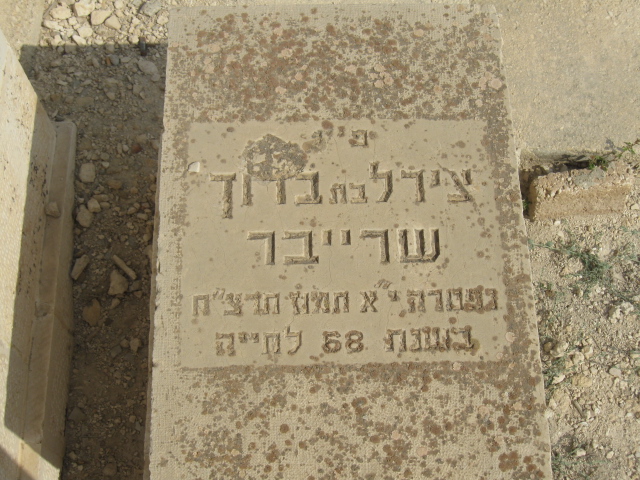 "פ"נ צירל בת ברוך שרייבר נפטרה י"א תמוז תרצ"ח בנת 68 לחייה " צירל שרייבר