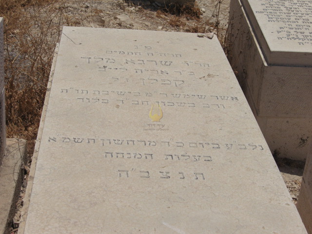 "פ"נ הרה"ח התמים הר"ר מלך שרגא ב"ר אריה לייב קפלן אשר שימש ר"מ בישיבת תו"ת ורב בשיכון חב"ד בלוד נלב"ע ביום כ"ד במרחשון תשמ"א בעלות המנחה תנצב"ה " שרגא מלך קפלן