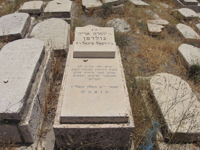 פ"נ אבינו ובעלי הישר והנכבד מופלג בתוי שיסד מוסדותתורה וחסד בארץ ובגולה הר"ר חיים יהודא ב"ר יצחק צבי גולדמן ז"ל מרטשסטר נולד אלול תרכ"ה ונפטר בתל אביב י"ד תשרי תרצו תנצבה