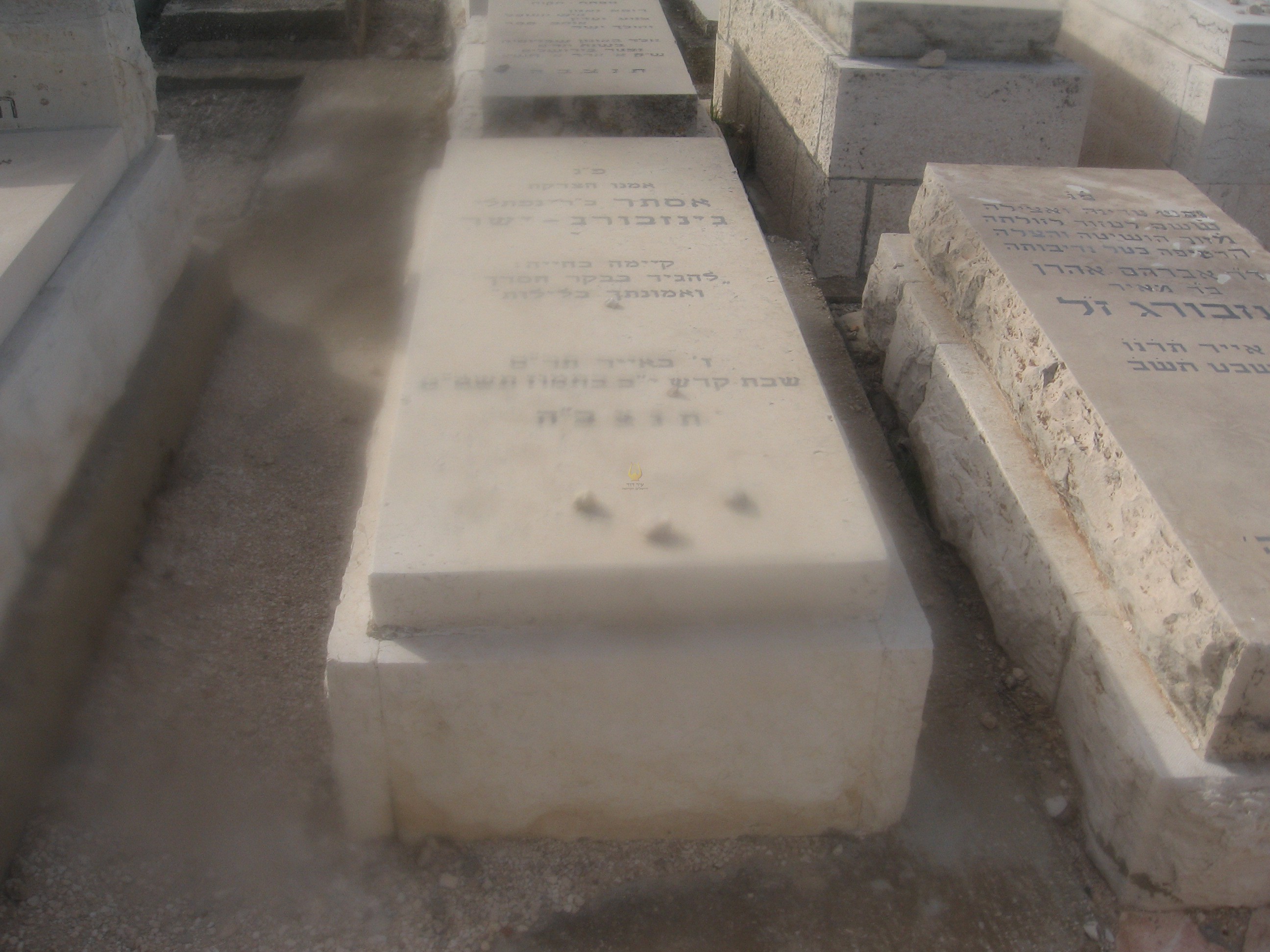 פ"נ המופלג הישר באדם מוה"ר אהרן ב"ר שניאור זלמן גינזבורג ז"ל הצנע לכת במעשה הצדקה רבנן הוקיר ותמך ביד רחבה נר לרגליו התורה והמצוה עלה השמימה בירח פנה זיו אייר כ'ה בו שנת תש"א ת.נ.צ.ב.ה