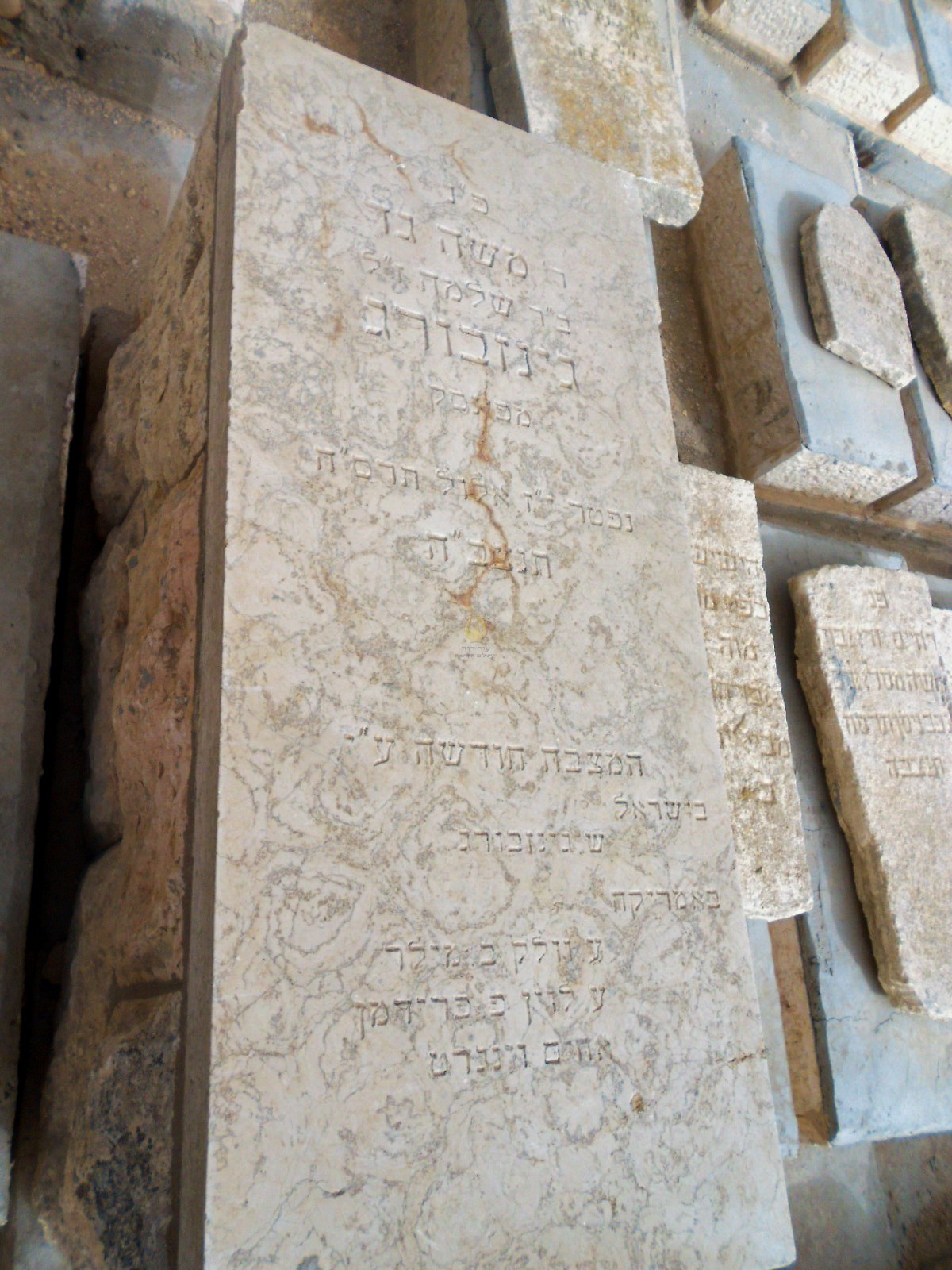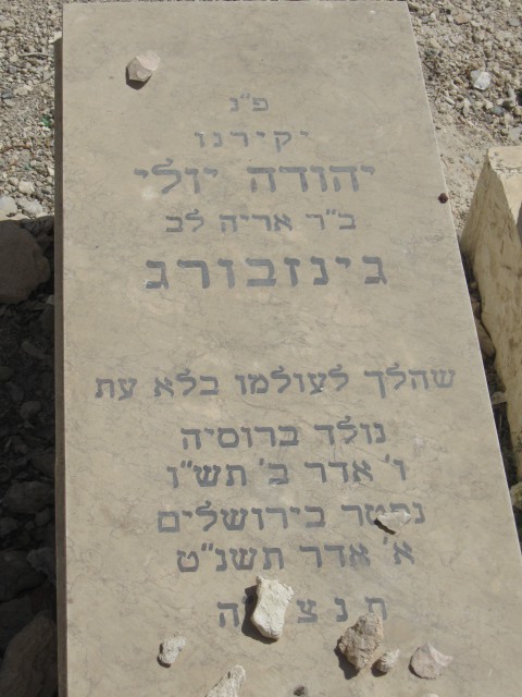 פ"נ הרב ר' יוסף גינזבורג זצ"ל בהרב ר' שלמה בהרב ר דוד זצ'ל מלאהישין ע'י פינסק נפטר ו כסלו תר"ע תנצבה מצבה זו הוקמה מחדש עי הנכדים והנינים בארץ ישראל .. בחודש כסלו תשכ"ט