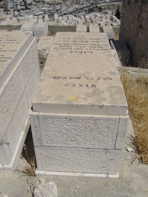 פ"נ מרת שפרינצא וינברג ע"ה בת ר' שמחה ז"ל שכל טוב חתן חן פיה פתחה בחכמה רודפת צדקה וחסד יראת ה' היא תתהלל נאה דורשת ונאה מקיימת צדקת ה' עשתה אמת היתה בפיה נלב"ע כ"ג אייר תשנ"ב תנצבה