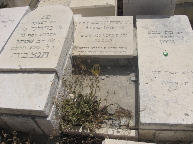 פ"נ האשה הצנועה והחשובה עדינת הנפש ואצילת הרוח מסרה נפשה על חינוך ילדיה מאחורי מסך הברזל רודפת צדקה וחסד בגוף ובממון קבלה יסורים באהבה מרת יהודית יעקובוביץ ב"ר יהושע הלוי נפטרה כ"ה אדר א' תשמ"ו תנצב"ה