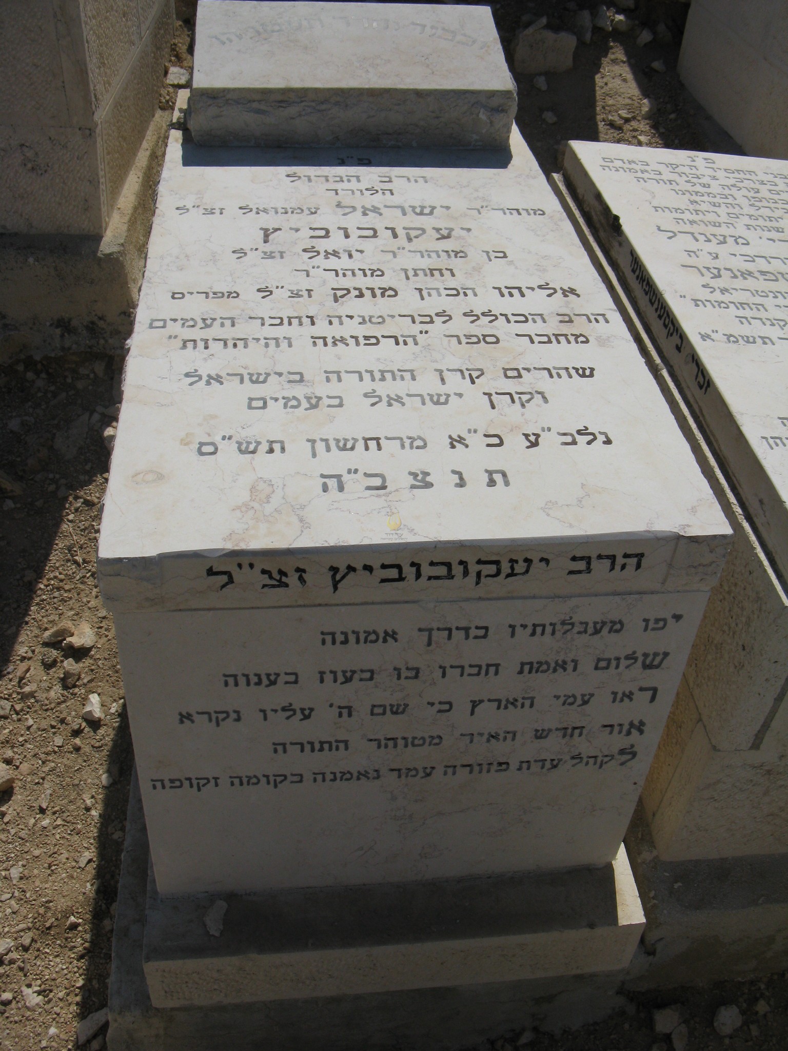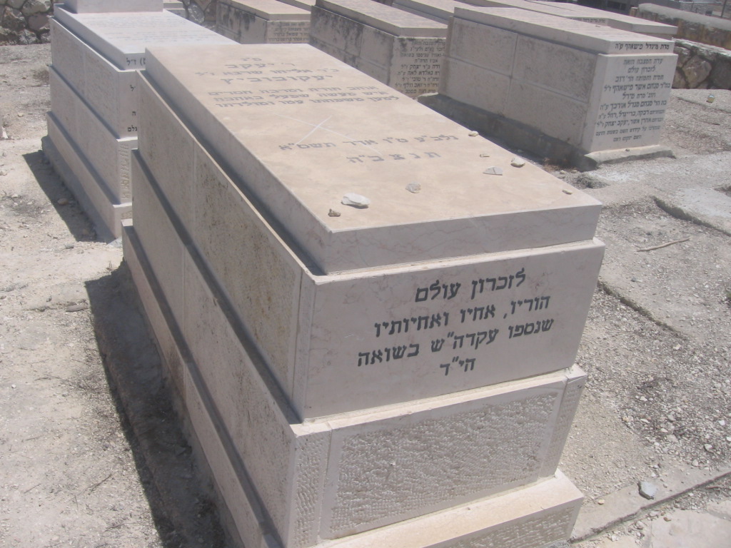 פ"נ הרה"ח ... במסירות נפלאה מוה"ר יוסף שמאי בהרה"ח ר' אהרן זצ"ל יעקובוביץ ישר באדם איך הוסרה העטרה וי נצעק מי יודה לנו יראה טהורה סולל נתיבות יושר ניטל גודל האבידה אין לתארה פה ולב טהור נפש זכה וברה שמר דרך ד' עמד במבחן לעתות בצרה מצות תפילין עוז התאזר אף בימי זעם ועברה אומץ לבו מי יכול לתנות בחינוך צאצאיו על דרכי התורה יושר ימליץ בעדנו וזכרו הבהיר לא ימוש מאתנו עד קומו לתחיה נלב"ע כ"ג ניסן תשנ"ח תנצב"ה