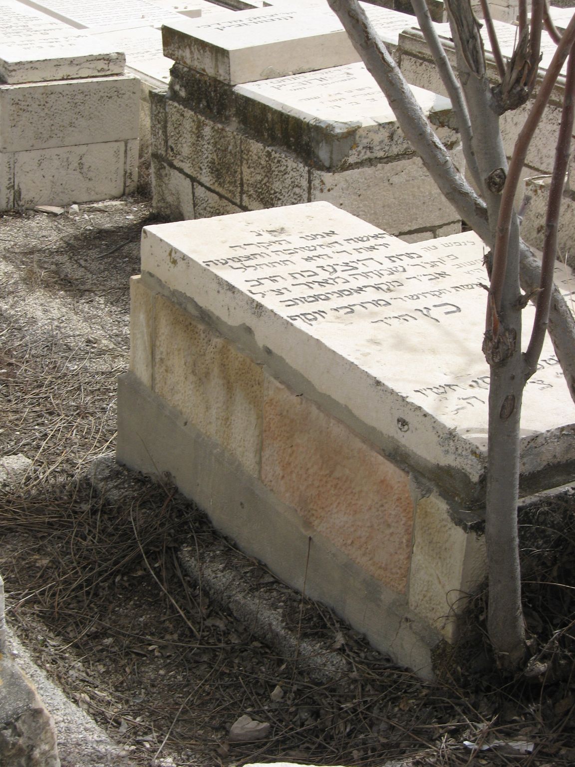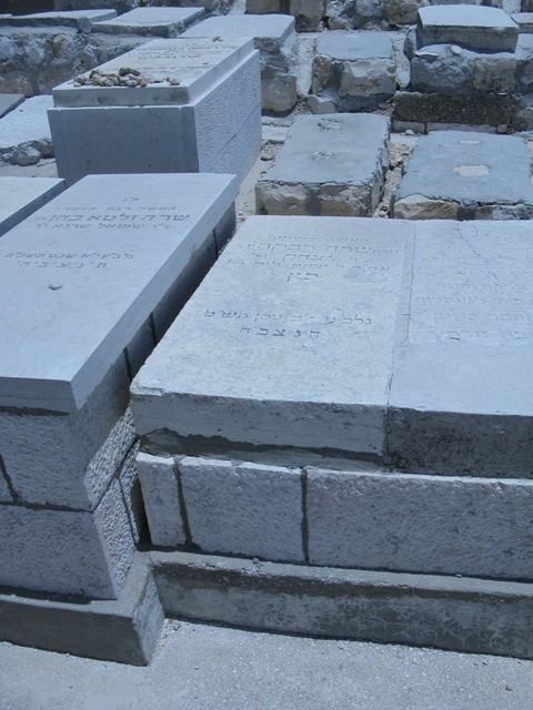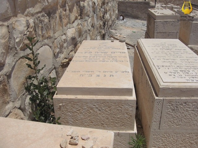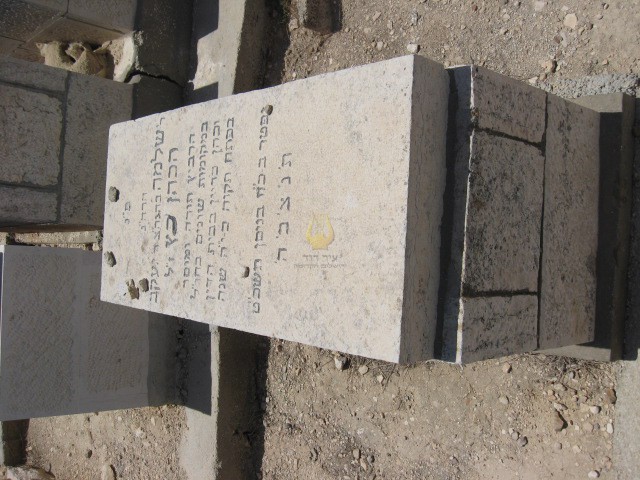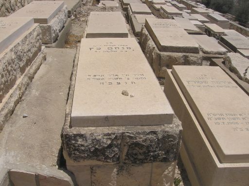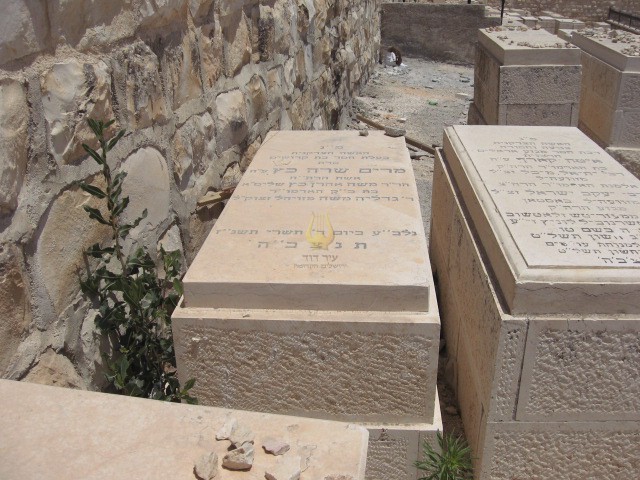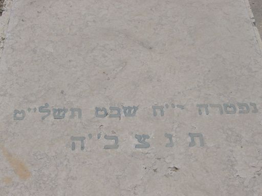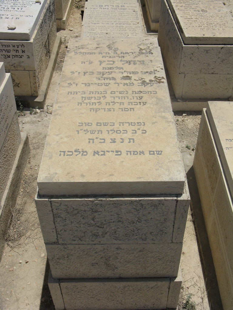 פ"נ מרת רייזל כץ בת ר' אברהם הלוי לבית רמברג מווערצלאו ליטא רחוקה ממשפחתה יסוריה רבות וקשות ימיה כימי גבורות זכתה בארץ ישראל לחיות ולהקבר נפטרה כ"ז אלול תרס"ט תנצב"ה