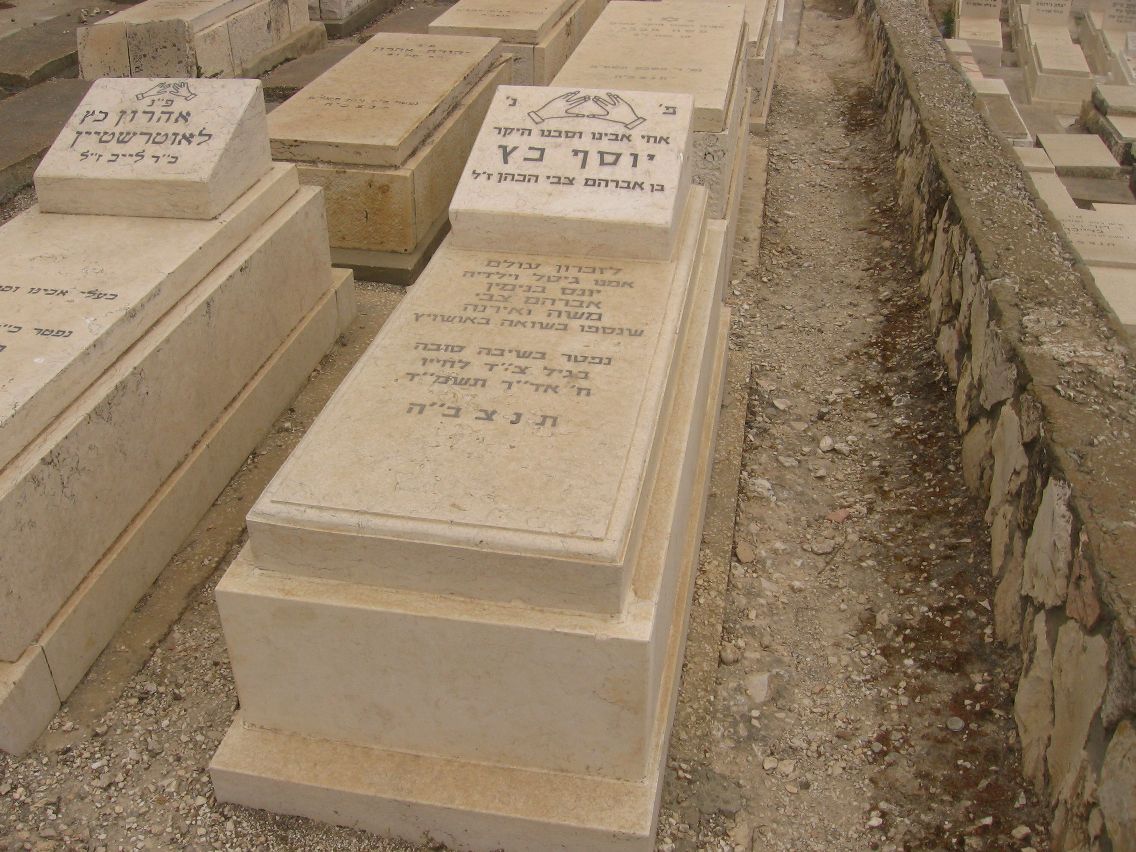 פ"נ איש הירא את ה' באמת תלמיד חכם מובהק אהוב לשמים ולבריות עסקן במצות הר'ר יוסף ב"ר אהרן הכהן כץ מקליבלנד נולד י'ז תמוז תר"י ונלבע כ' אב תרפ"ה ת'נ'צ'ב'ה'