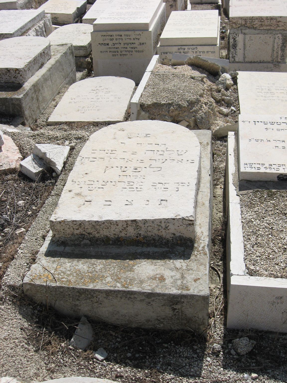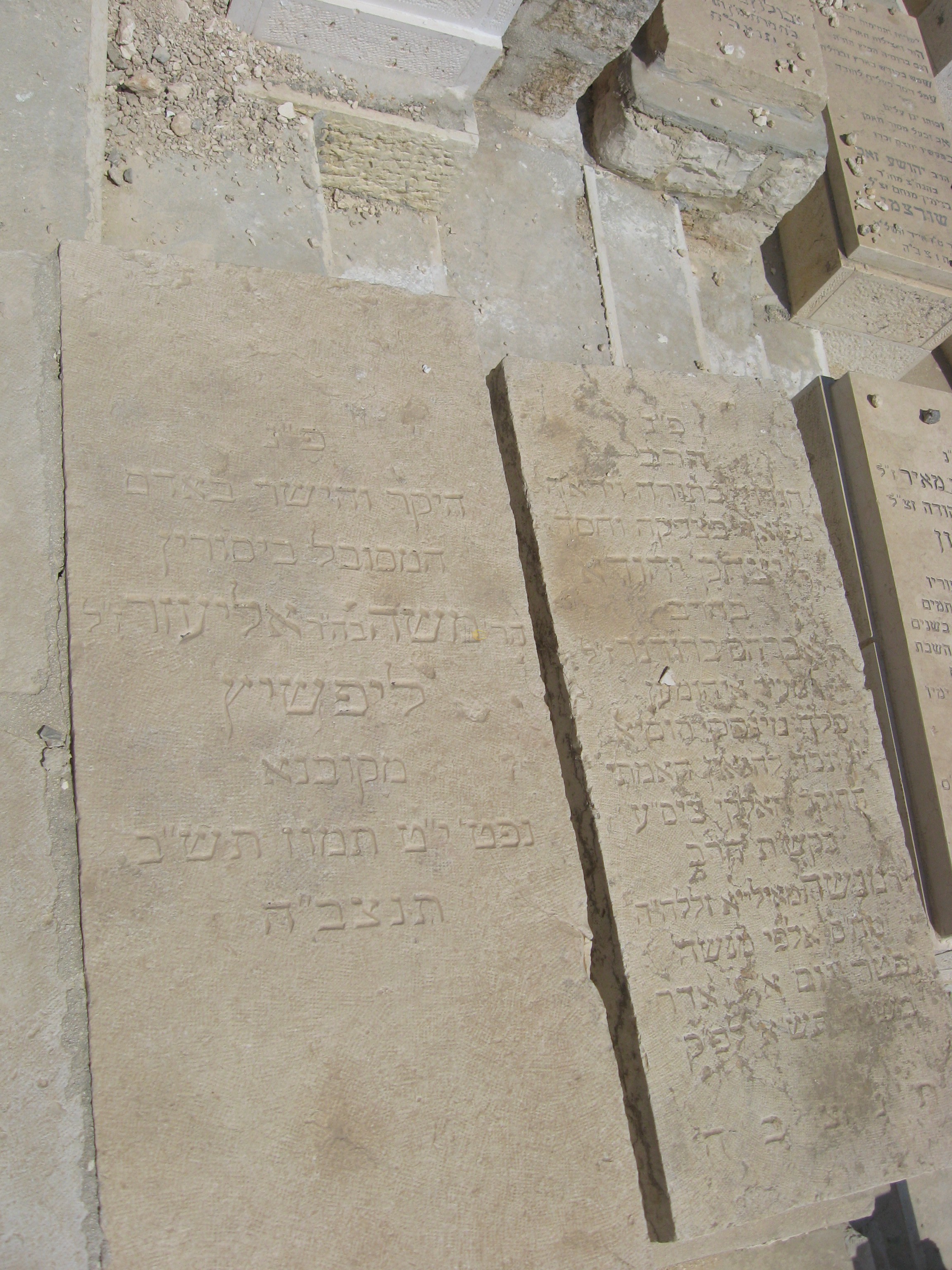 פ"נ האי גברא יקירא יליד ירושלם הר אלתר שמעון הלל ליפשיץ ב'ר יהושע יוסף ע"ה מלמד תנוקות נלב"ע ד אלול תש"ה ת'נ'צ'ב'ה'