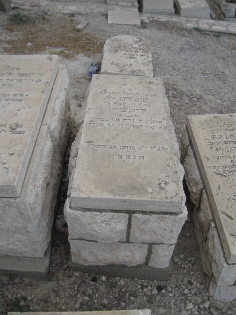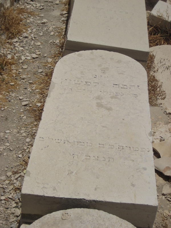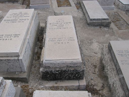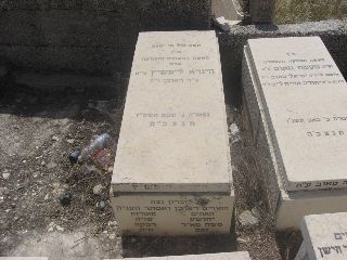 פ"נ סבתנו היקרה חיה-שרה ליפשיץ ע"ה בת ר' יעקב-חיים ורחל גרינברג ז"ל אשת ר' יצחק-דוד ז"ל מאנטופול עלתה לא"י עם בעלה בשנת ה'תרצ"ה נלב"ע ה' בכסלו ה'תרצ"ט תנצב"ה