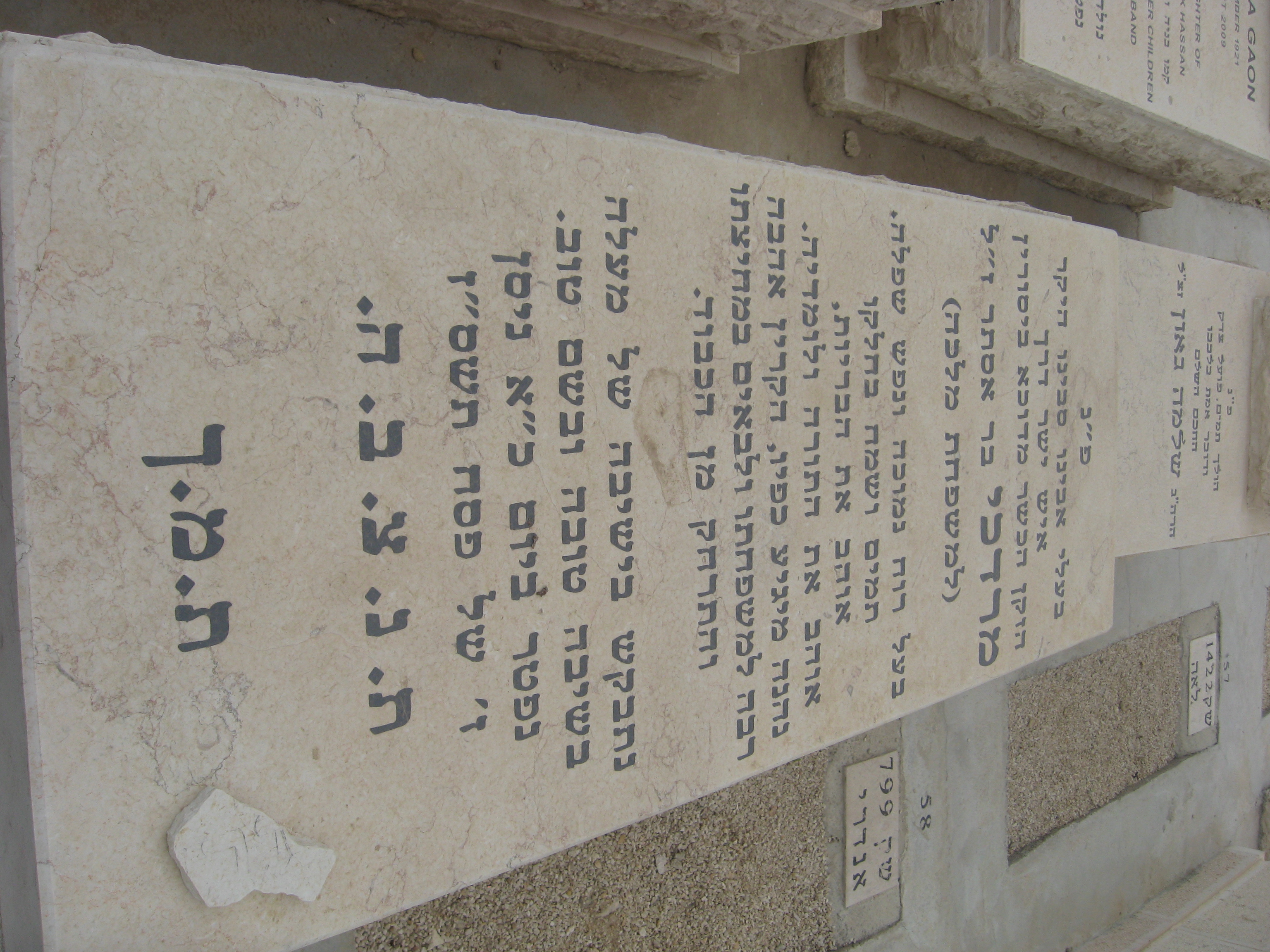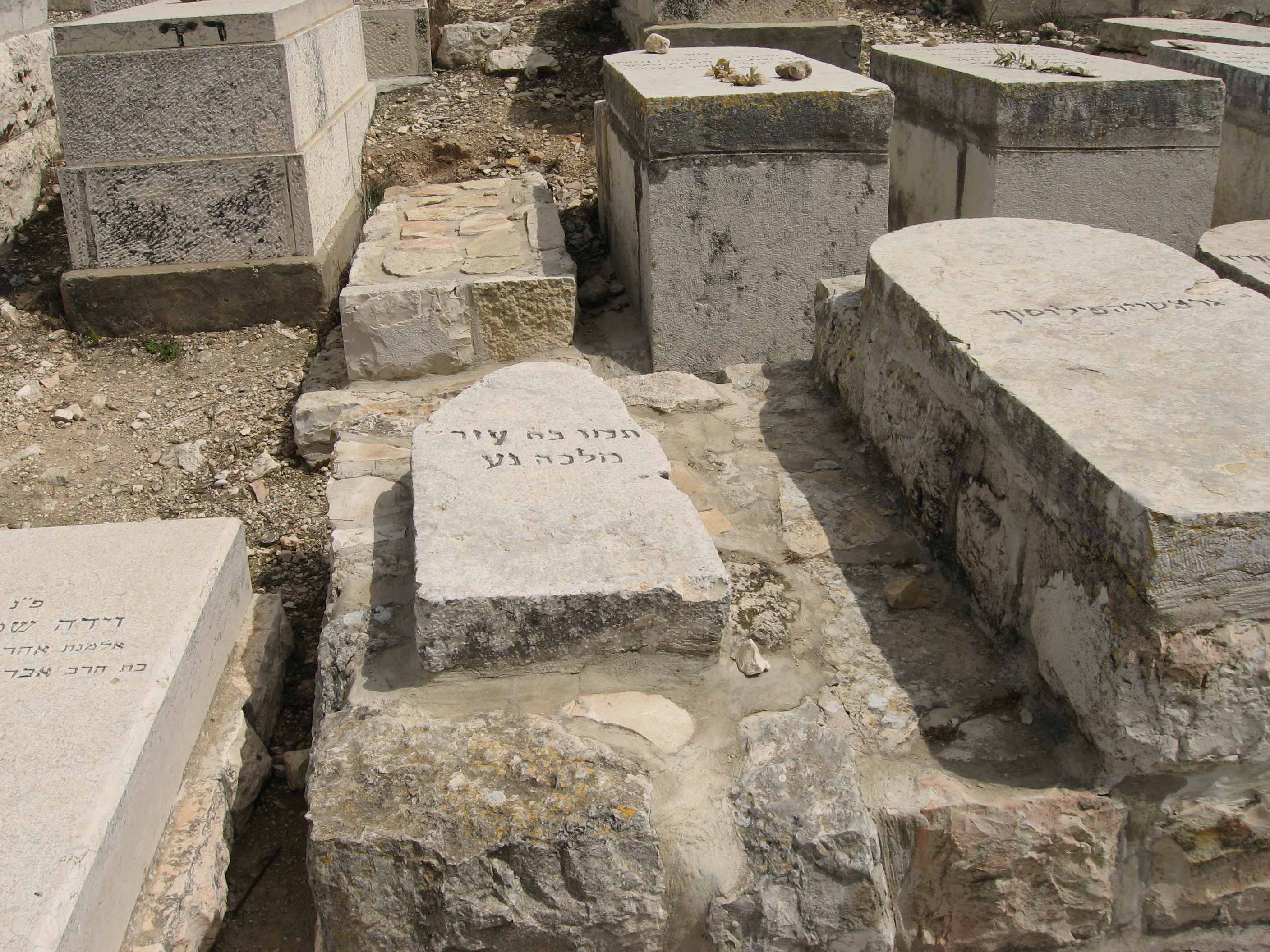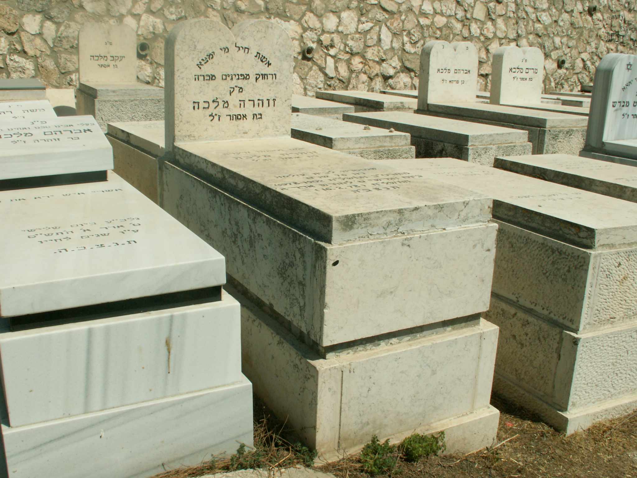 פ.נ. אשה כשרה ונכבדת רחל מלכה בת מזל ז"ל במעלות טובות מוכתרת בצדקות ובחן מעוטרת הזיו והטוב מילאו את ביתה חסד ורחמים מנת חלקה ושאיפתה דור ישרים השאירה אחריה עם איש בריתה וצאצאיה למענם מסרה נפשה לגדלם ולחנכם בדרך התורה ומצוותיה במחיצת הצדקניות תנוח נפשה ומליצת יושר תהיה לעמה ולמשפחתה נ.ל.ב.ע. כ"א טבת תשס"ט ת.נ.צ.ב.ה.