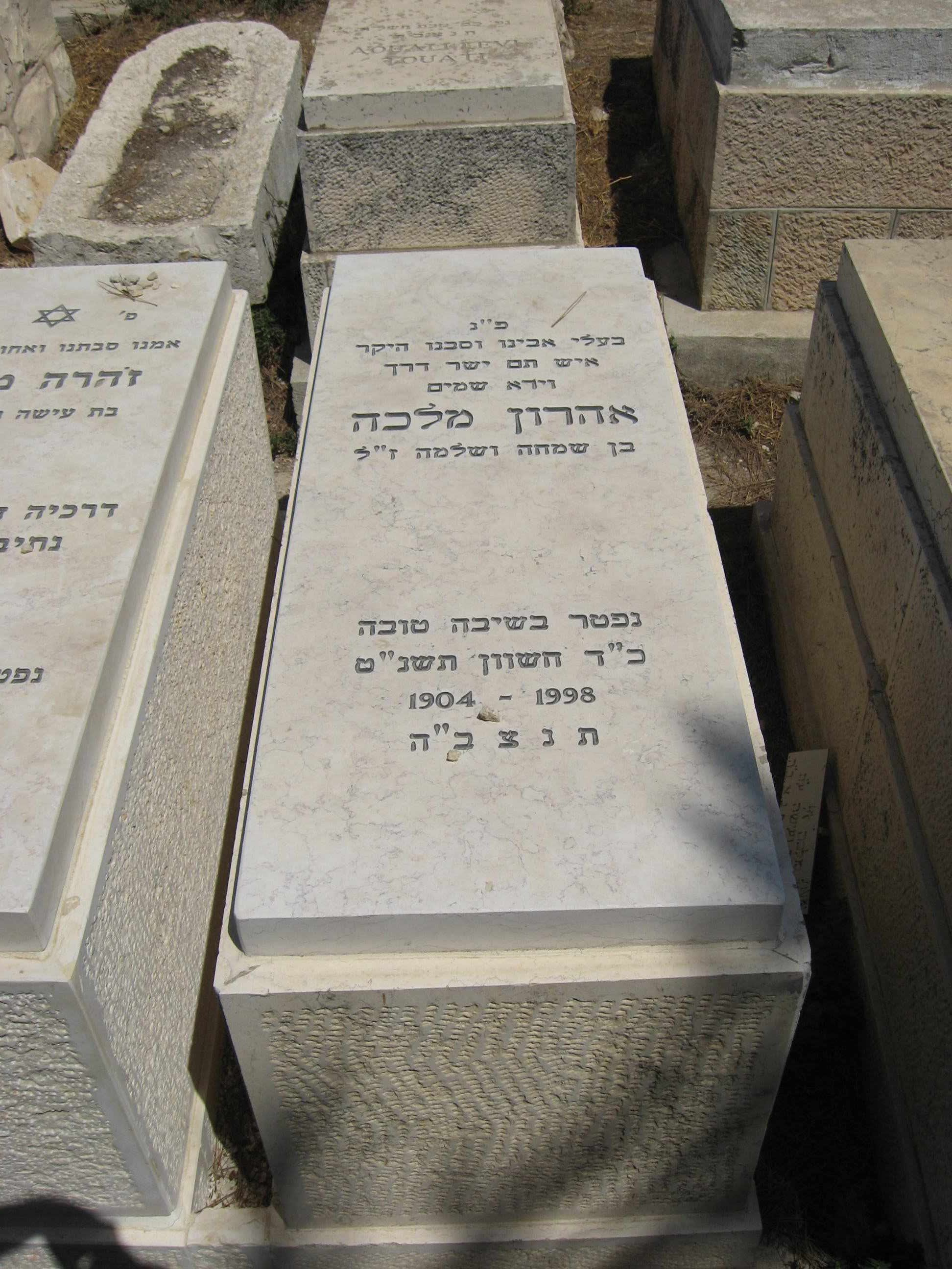 פ"נ בעלי אבינו סבינו היקר איש ישר דרך הזקן הכשר מדוכא ביסורין מרדכי בר אסתר ז"ל (למשפחת מלכה) בעל רוח נמוכה ונפש שפלה. תמים ושמח בחלקו אוהב את הבריות, אוהב את התורה ולומדיה. נהנה מיגיע כפיו, הקרין אהבה רבה למשפחתו ולבאים במחיצתו והתרחק מן הכבוד. נתבקש בישיבה של מעלה בשיבה טובה ובשם טוב. נפטר ביום כ"א ניסן ז' של פסח תשס"ז ת.נ.צ.ב.ה. ת.מ.ך