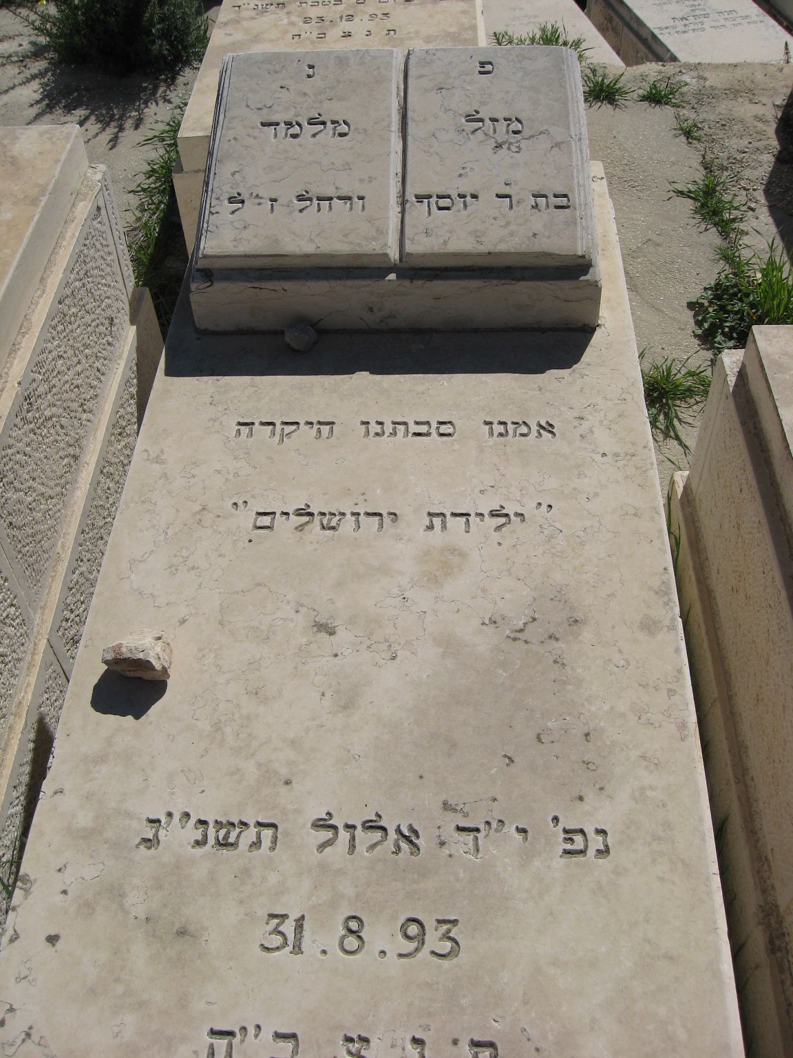 פ"נ הילד הנחמד מרדכי אליעזר ז"ל בן דוד ויהודית מלמד הי"ו נכד משפחת חיימזון נולד כ"ו בטבת תשכ"ה נקטף בתאונת דרכים בי"ד בתמוז תשל"ב בלכתו ללמד תורה תנצב"ה