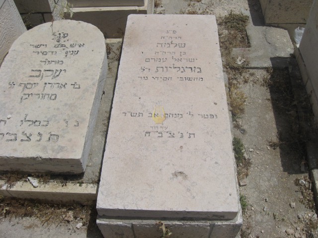 פ"נ הרב הג' יליד ירושלם מופלג בתורה מופלא במדות רבי אליהו ב"ר שמעון הכהן ז"ל מרגליות נלב"ע י"ג אלול תש.. תנצב"ה