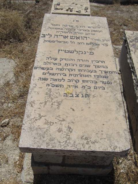 פ"נ ר' משה יואל ב"ר אהרן זאב ז"ל פינקלשטיין העמיד דורות רבים בארץ ישראל נפטר ד' אב תרע"ו תנצב"ה