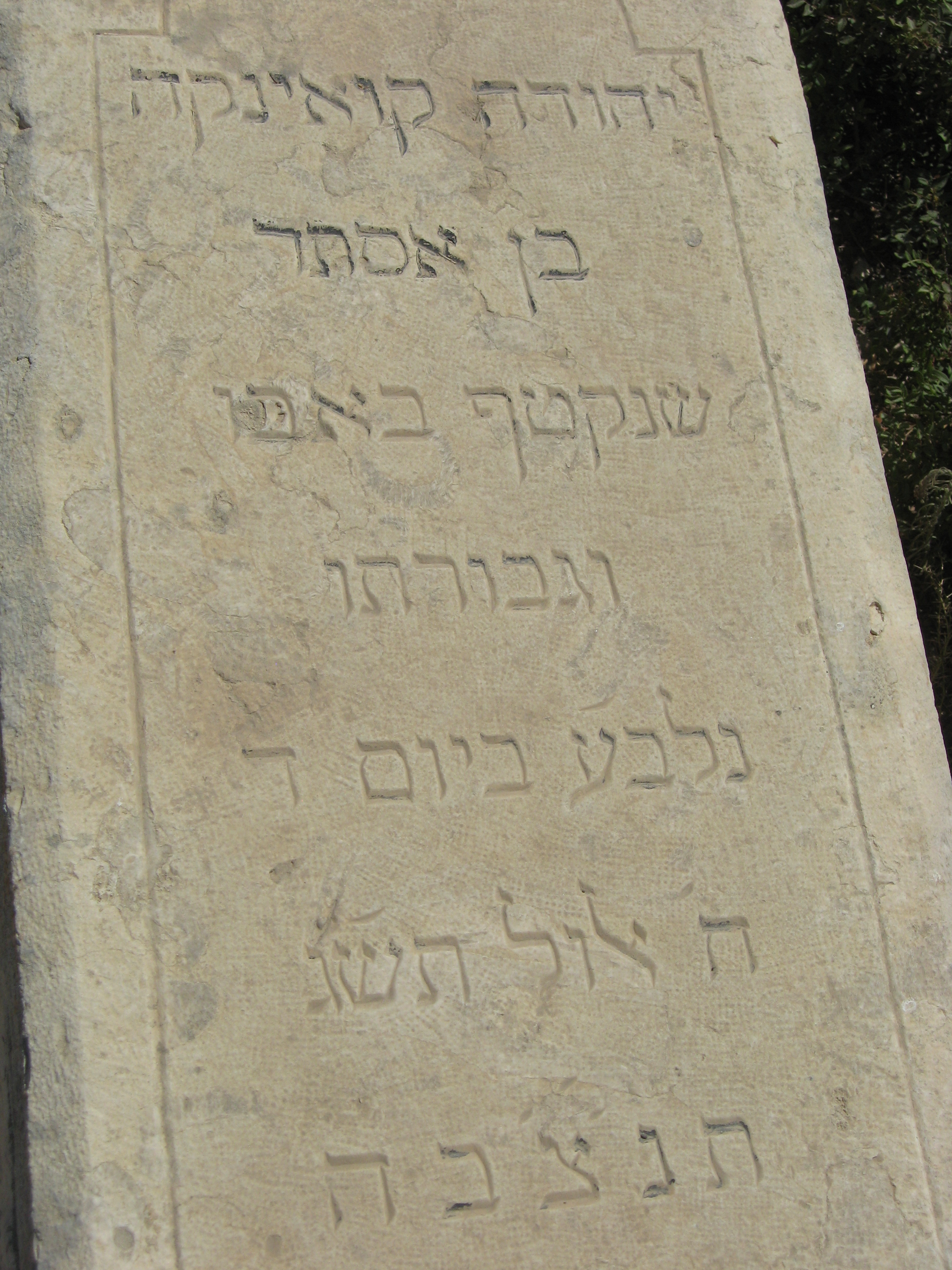 מ'ק הירא את ה' ר'צ'ו ה'ר יאודה ן' משה קואינקה נ'ע ביום כ'ו אדר ת'רמ'ב ת'נצ'ב'ה
