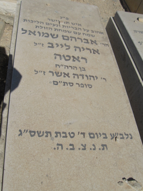 פ'נ ר' אברהם ב'ר מרדכי ראטה נלבע במושב זקנים כ'א חשון תרנז תנצבה