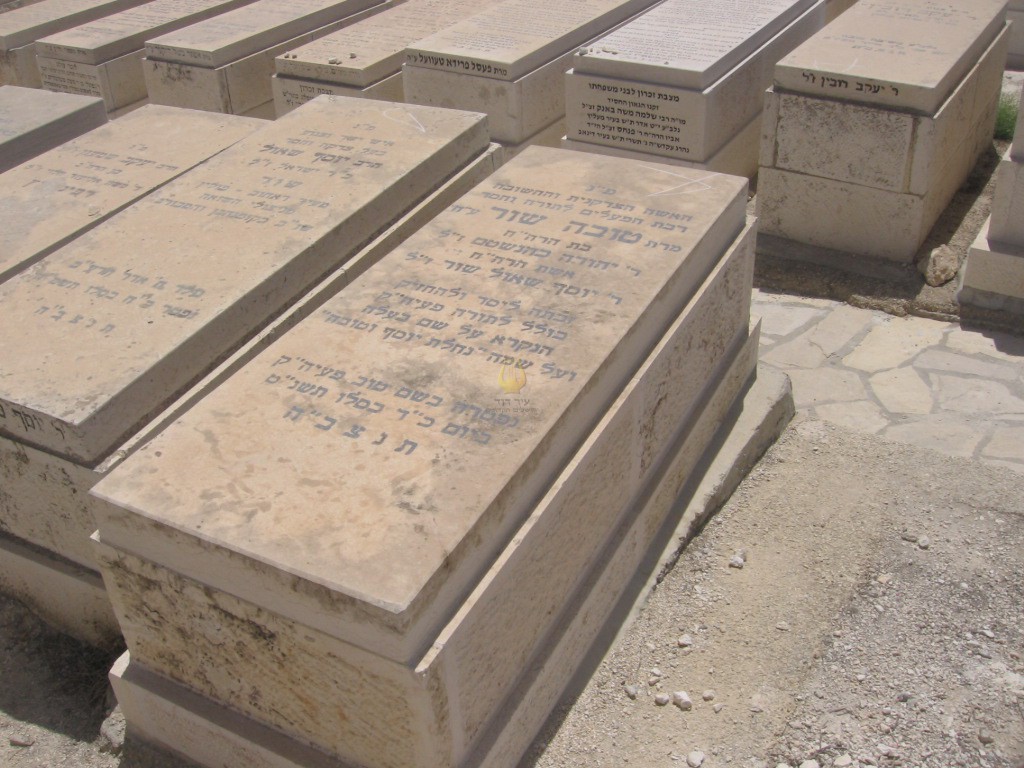 פ"נ האשה החשובה והצנועה מרת חיה שור ע"ה (סוכרנקו) בת הרה"ח ר' אליעזר קובלנוב ז"ל מנעוול שישב עם כל משפחתו בכלא הרוסי על מאמציהם לעלות לאה"ק נפטרה בכ"ח תמוז תשנ"ט תנצב"ה