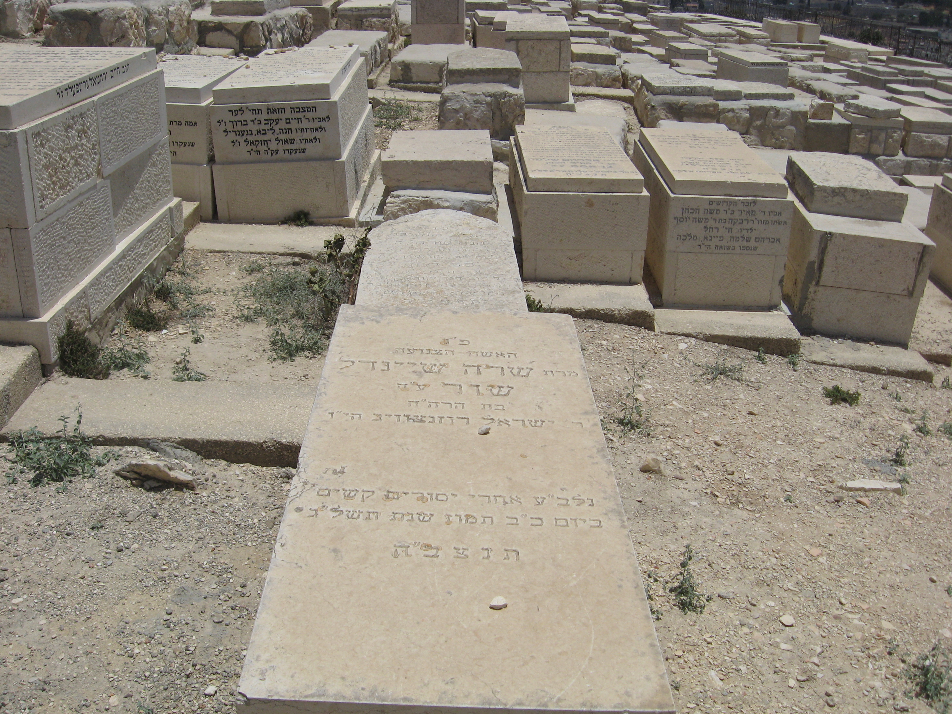 פ"נ האשה הצנועה מרת שרה שיינדיל שור ע"ה בת הרה"ח ר' ישראל רוזנצוויג הי"ו נלב"ע אחרי ייסורים קשים ביום כ"ב תמוז שנת תשל"ג תנצב"ה