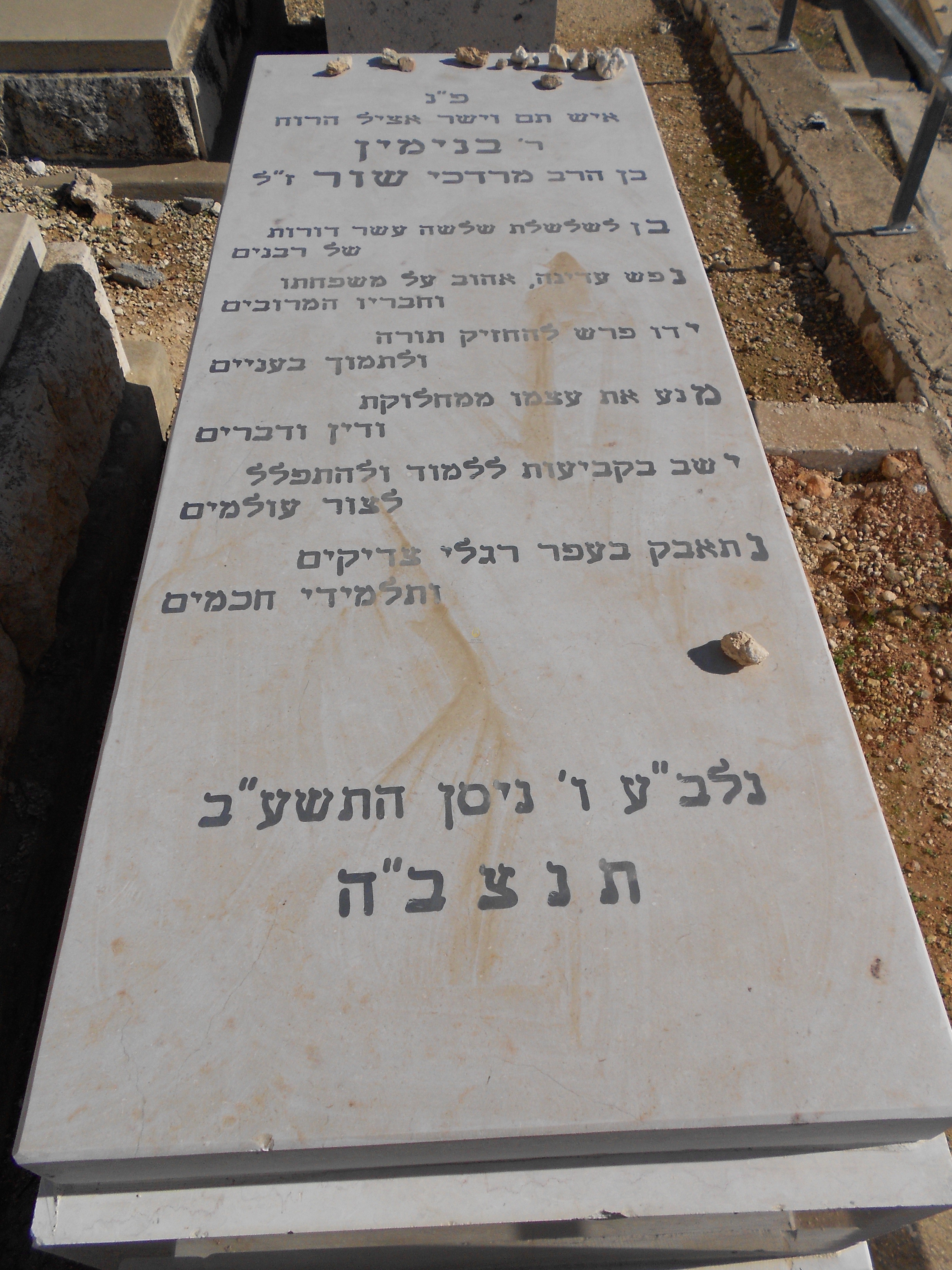 פ"נ הרה"ח ר' ברוך צבי שור ז"ל בהרה"ח ר' משה שלום ז"ל יליד ירושלים מזיקני חסידי קרלין סטולין נלב"ע ביום י"ט אלול תשנ"ו תנצב"ה