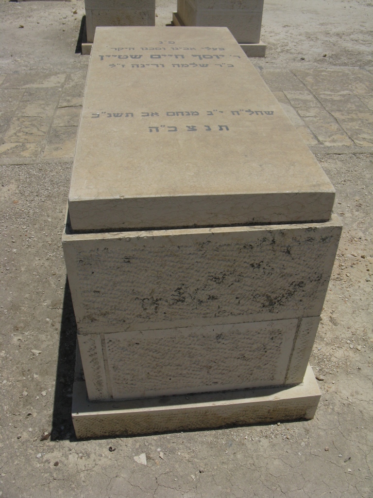 פ"נ אבינו היקר באדם איש תם וישר שייף עייל שייף נ..יק עסק במו"מ באמונה ודבק ברבותיו אדמור"י בעלזא בכל נפשו ומאודו הרה"ח ר' צבי ארי' שטיין ז"ל בן הגה"ח רבי יעקב אליעזר זללה"ה מדובעצקי בן הגה"ח רבי צבי ארי' זללה"ה מקרולבר נלב"ע ט"ז תשרי חוהמ"ס תשמ"ו לפ"ק תנצב"ה