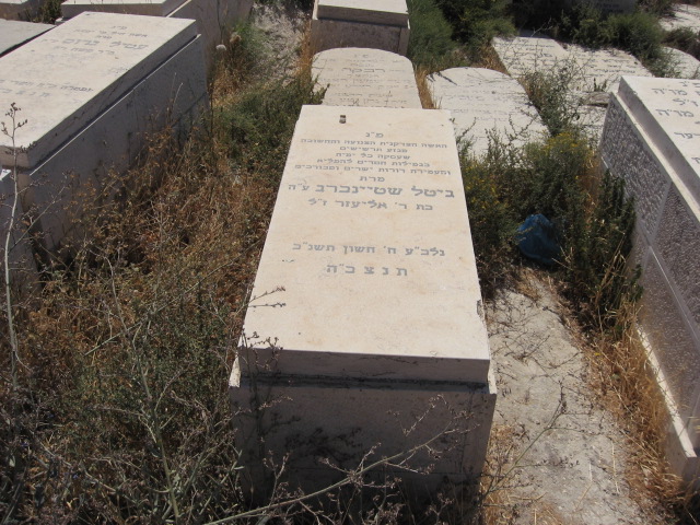 פ"נ האשה החשובה והצנועה מרת פעריל ע"ה שטיינברג אשת הר"ר חיים יוסף שטיינברג שליט"א בת הר"ר אהרון אליהו אייכלער ז"ל נפטרה ביום ח' שבט תשס"ח בשם טוב ובשיבה טובה תנצב"ה