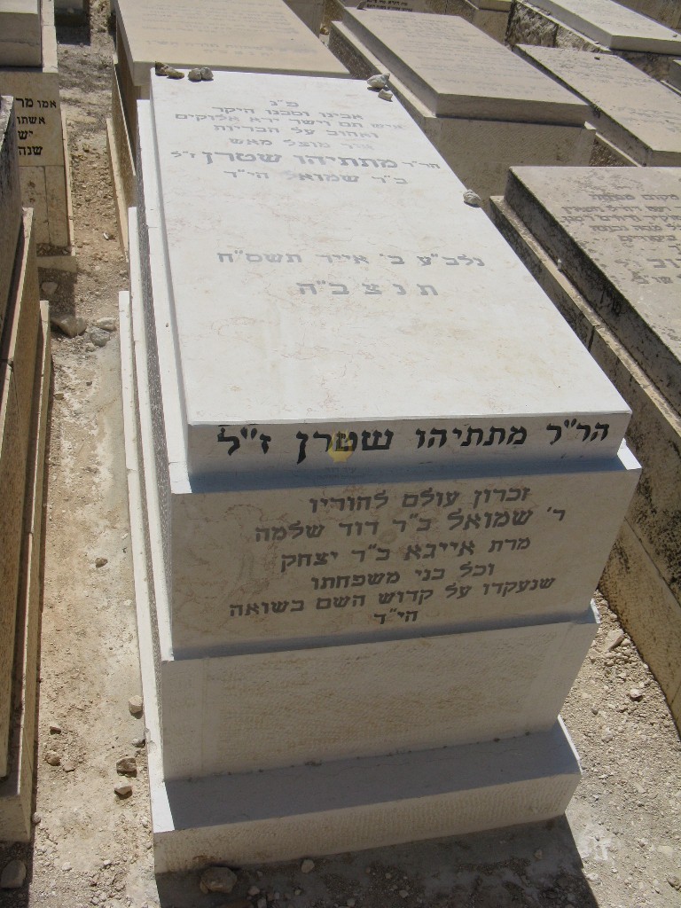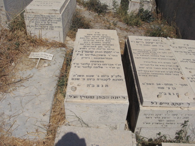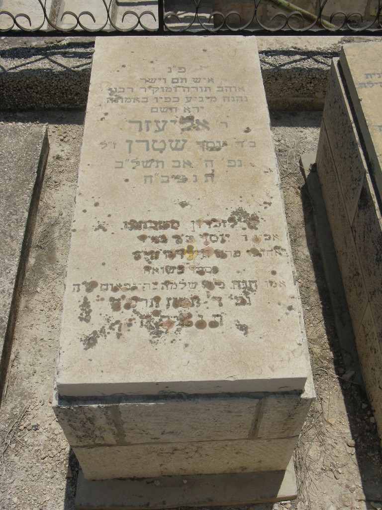 פ'נ אבינו היקר שמעון יחזקאל בן הר'ר יצחק שטרן ז'ל נפטר בירושלים ביום י"ג תשרי התר'ע תנצבה הקבר שוקם בתשכט