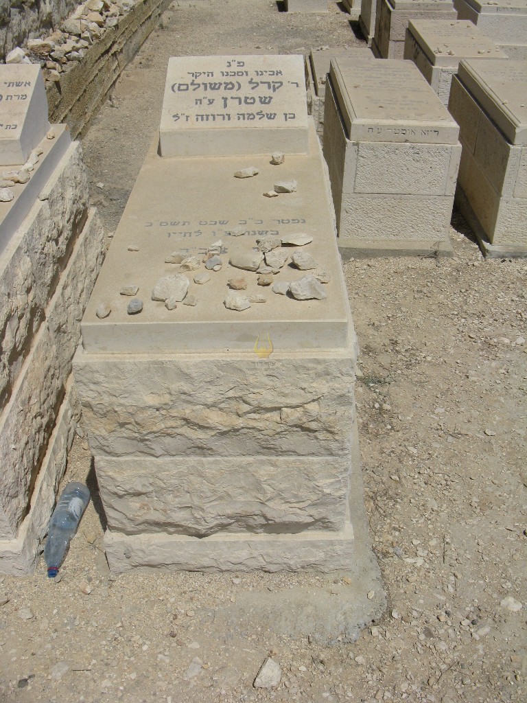 פ"נ האי גברא יקירא מו"מ בתויר"ש רודף צדקה וחסד הדריך את בניו בדרכי התורה והיראה במסירות נפלאה דבק באמונת חכמים מחשובי חסידי ויזניץ הרה"ח ר' שלמה ב"ר ברוך ז"ל שטרן שימש בקודש כשו"ב בקהילת וישוי, ואסלוי, בריסל נפטר בשם טוב ובשיבה טובה ביום י"ב כסלו תשנ"ז תנצב"ה