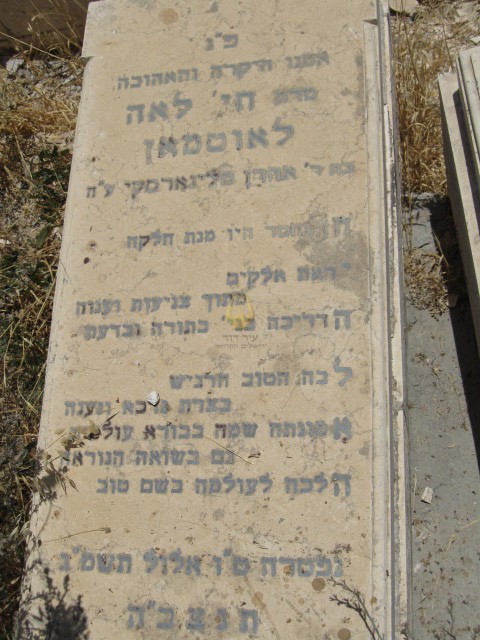 מצבת קבורת פרחה בת יחזקאל יהושע גבאי ז"ל אשת סלימאן דוד ששון ז"ל נלבע ביום יט טבת תרצ"ו תנצבה