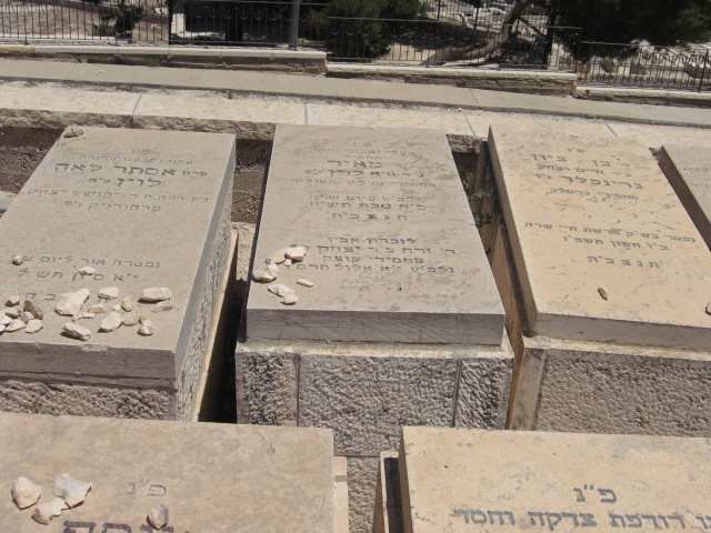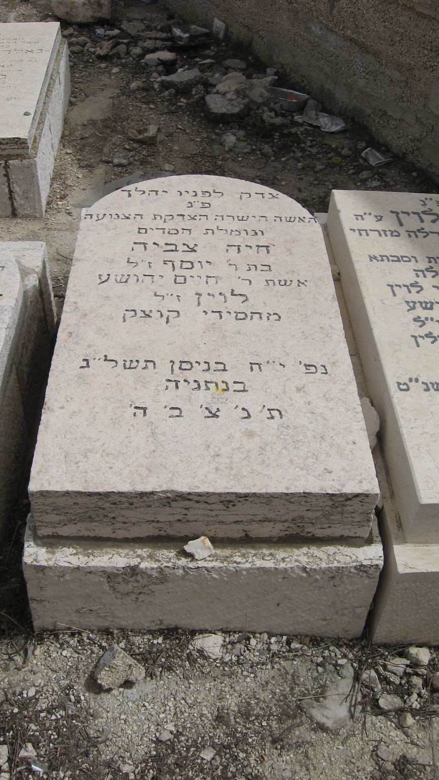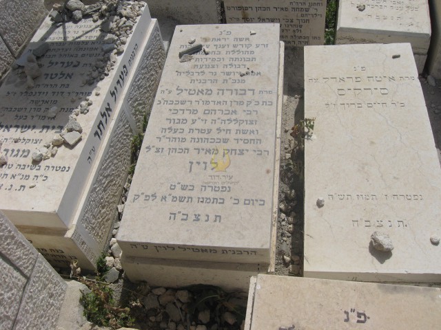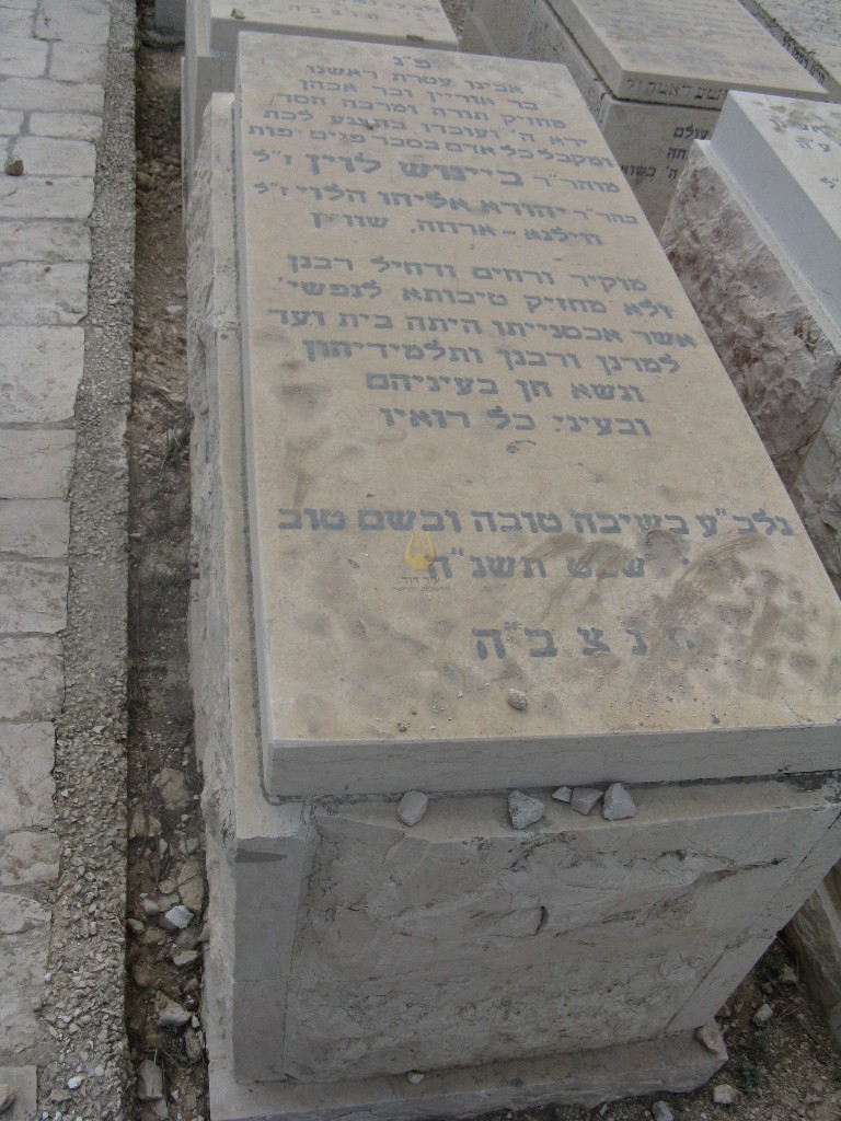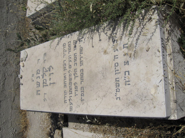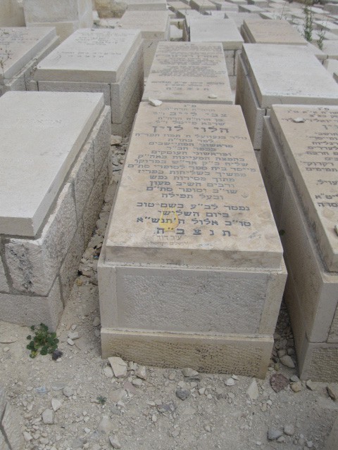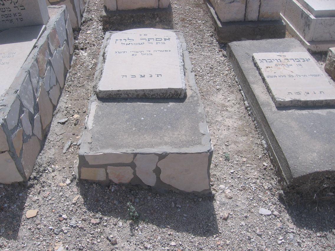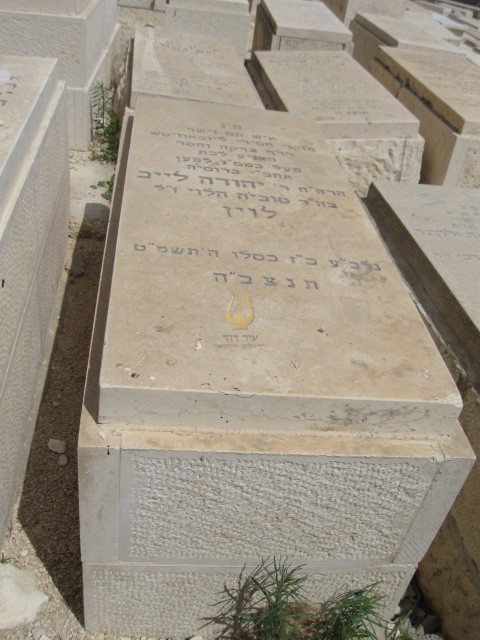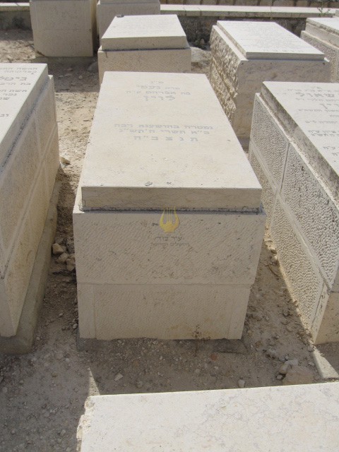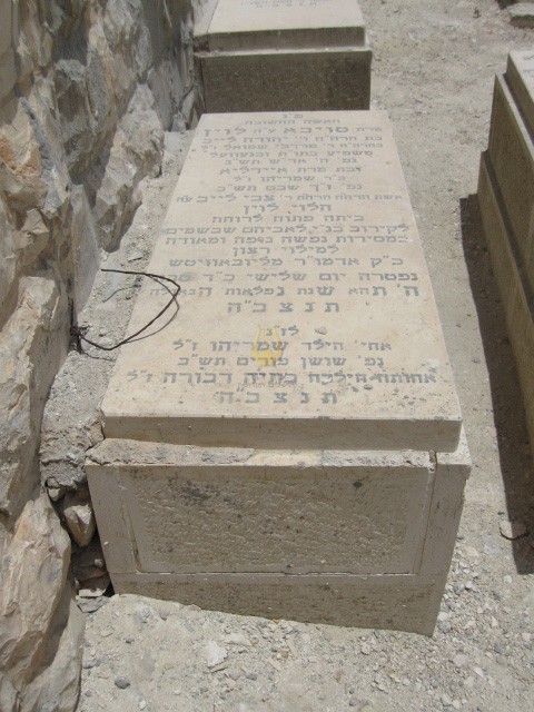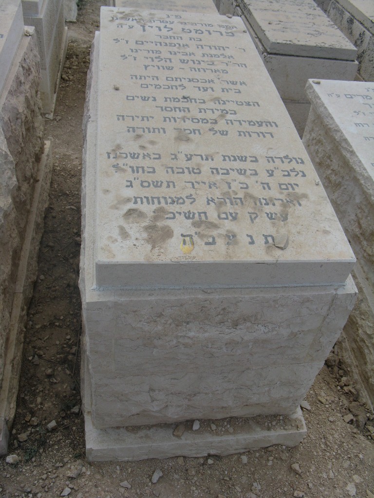 פ"נ אשה צדקנית צנועה וחסודה ובעלת אמונה תמימה מרת לאה לוין ב"ר חיים ורישא רחומא ע"ה שמסרה נפשה על קיום תומ"צ וקבלה יסורים קשים באהבה נפטרה במוצש"ק פר' שופטים אור לה' אלול ה'תש"נ תנצב"ה